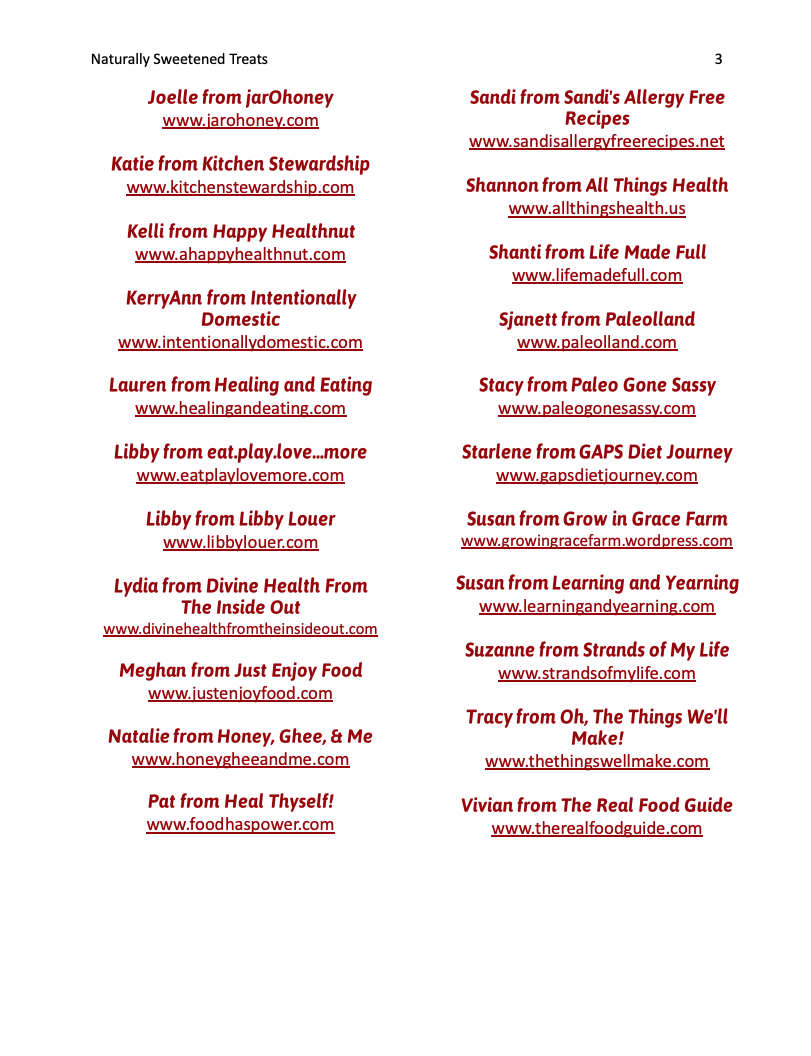 Naturally Sweetened Treats is a 102-page electronic book of best-of-the-best recipes compiled from over 41 real food bloggers.